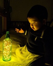 綺麗なフォルムと、ガラスの色から透ける柔らかい光が特徴で、子供が寝るときのランプ、ベッドサイドの読書灯、インテリアとしてお使いいただけます。